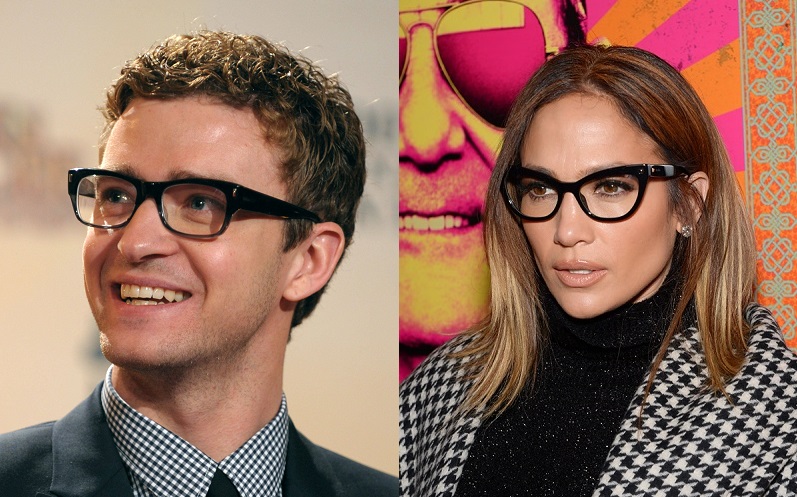 Justin Timberlake a choisi une monture angulaire arrondie assez légère sur le dessous du cadre de la lunette. Jennifer Lopez a choisi un modèle rétro papillon.